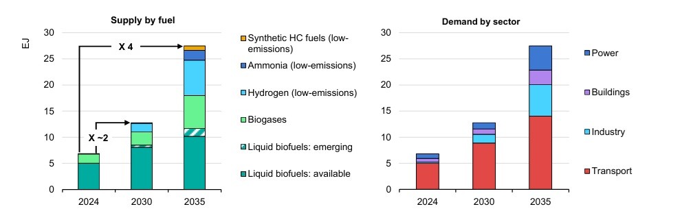 Figure2: Sustainable fuel supply by fuel and demand by sector in the accelerated case, 2024 2035