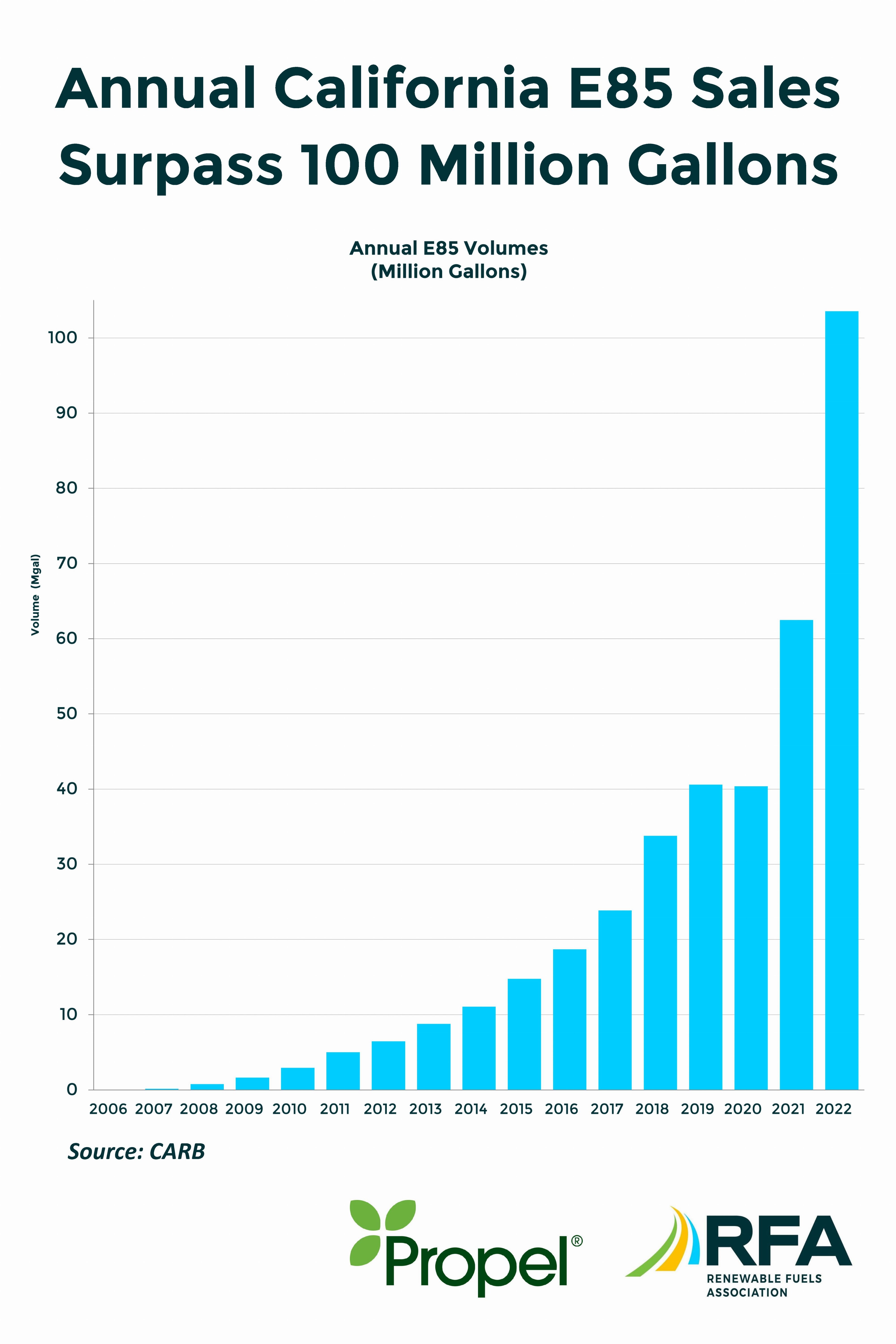 RFA was joined at the busy suburban station by Propel Fuels, which provides E85 at many locations in the area. “Propel launched E85 in the Sacramento region in 2007,” said Rob Elam, Propel Fuels CEO. “It's been an incredible journey to see E85 go from zero gallons sold to over 100 million gallons in 2022. It's now the fastest-growing fuel in California. We expect to see exponential growth as Propel expands its E85 wholesale offering across the west coast and beyond.”