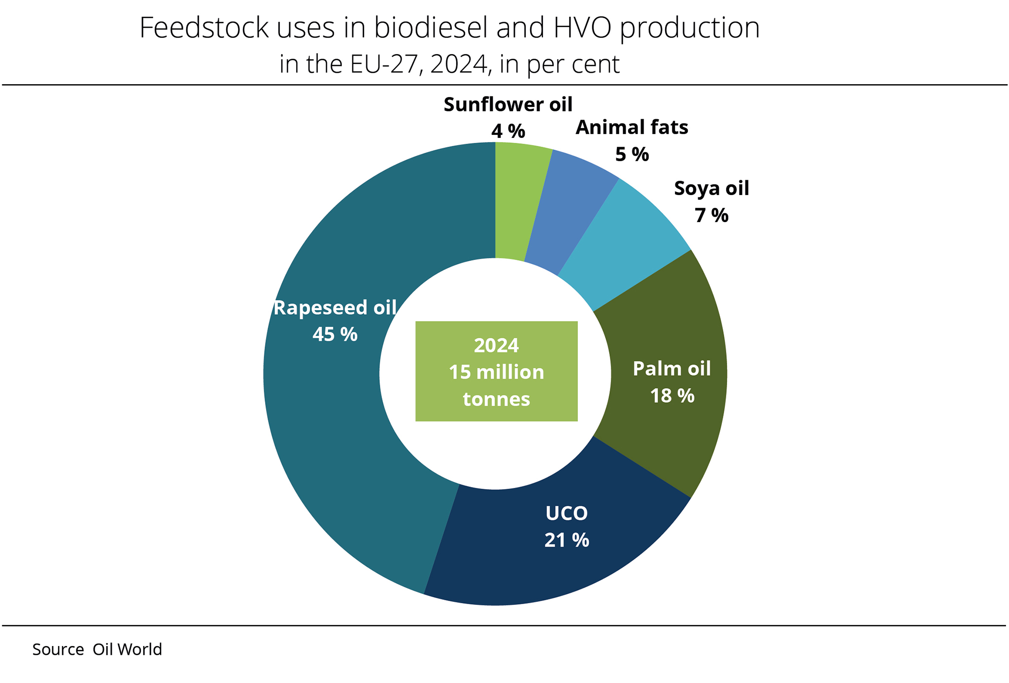 Regarding the significance of soybean oil as a biofuel feedstock in the EU, the UFOP has emphasised the substantial importance of rapeseed oil. Accounting for 45 per cent, this source is significantly more important than soybean oil, which accounts for only 7 per cent.