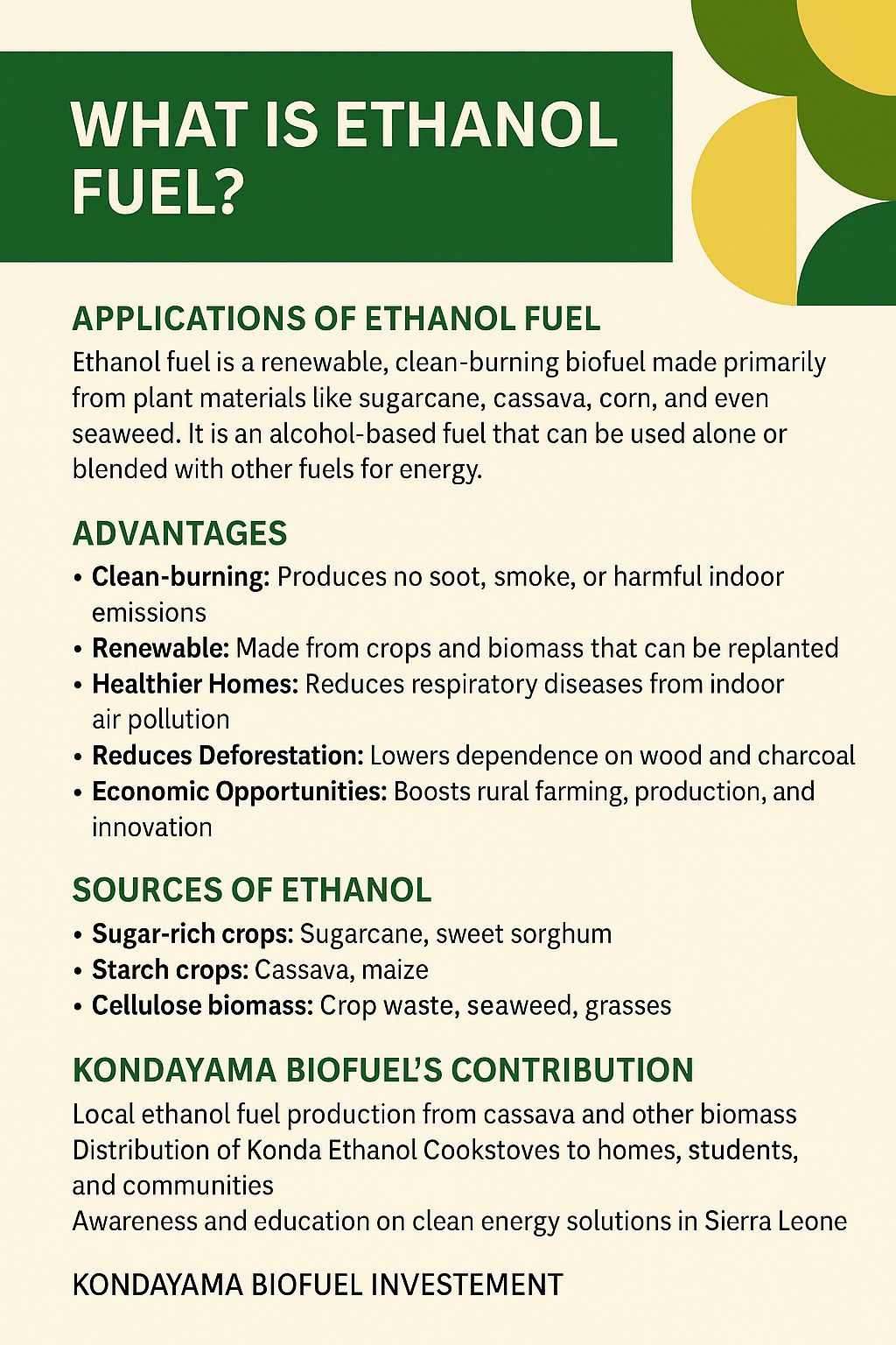 Kondayama Biofuel Investment offers locally manufactured ethanol cookstoves and safe ethanol cooking