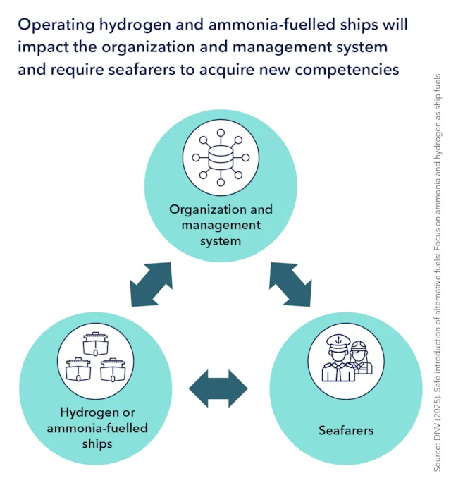 The safety challenges with hydrogen and ammonia also require changes in ship operation, crew training and possibly the organizational set-up.
