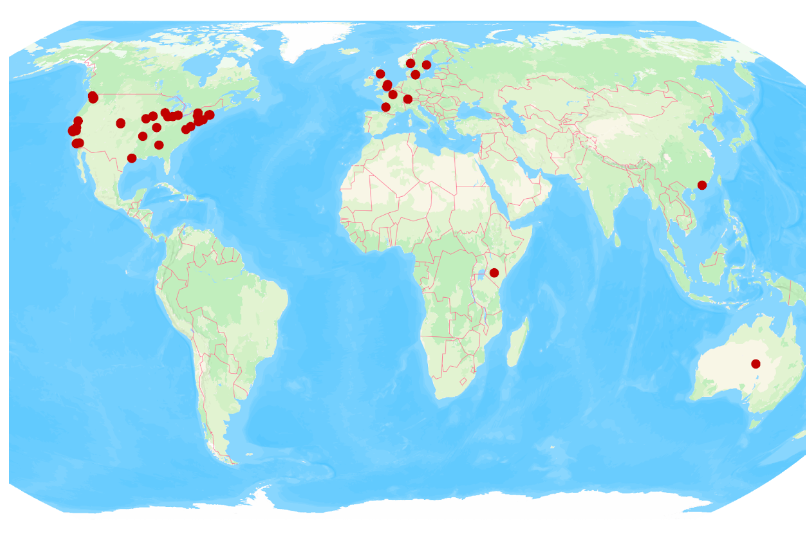 ● Zurich, Switzerland; Cambridge, England; Wanguru, Kenya; Oslo, Norway; Victoria, Canada; Stockholm, Sweden: 1 each